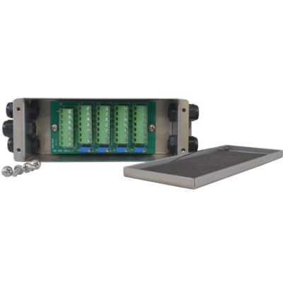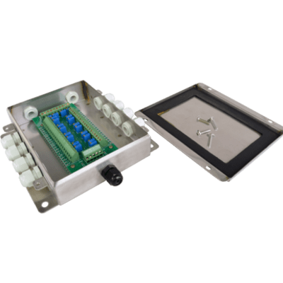 Caja sumadora de celdas de carga, se encarga de sumar las señales y enviarlas por un solo cable a el indicador, es utilizada cuando es necesario tener mas de 1 celda de carga. Las cajas de empalme cuentan con potenciometros con el fin de ajustar la sensibilidad de la celda y ajustar la excentricidad del sistema de pesaje. Estan disponibles en ABS de alta resistencia y acero inoxidable. Disponible de 4 y 10 celdas.